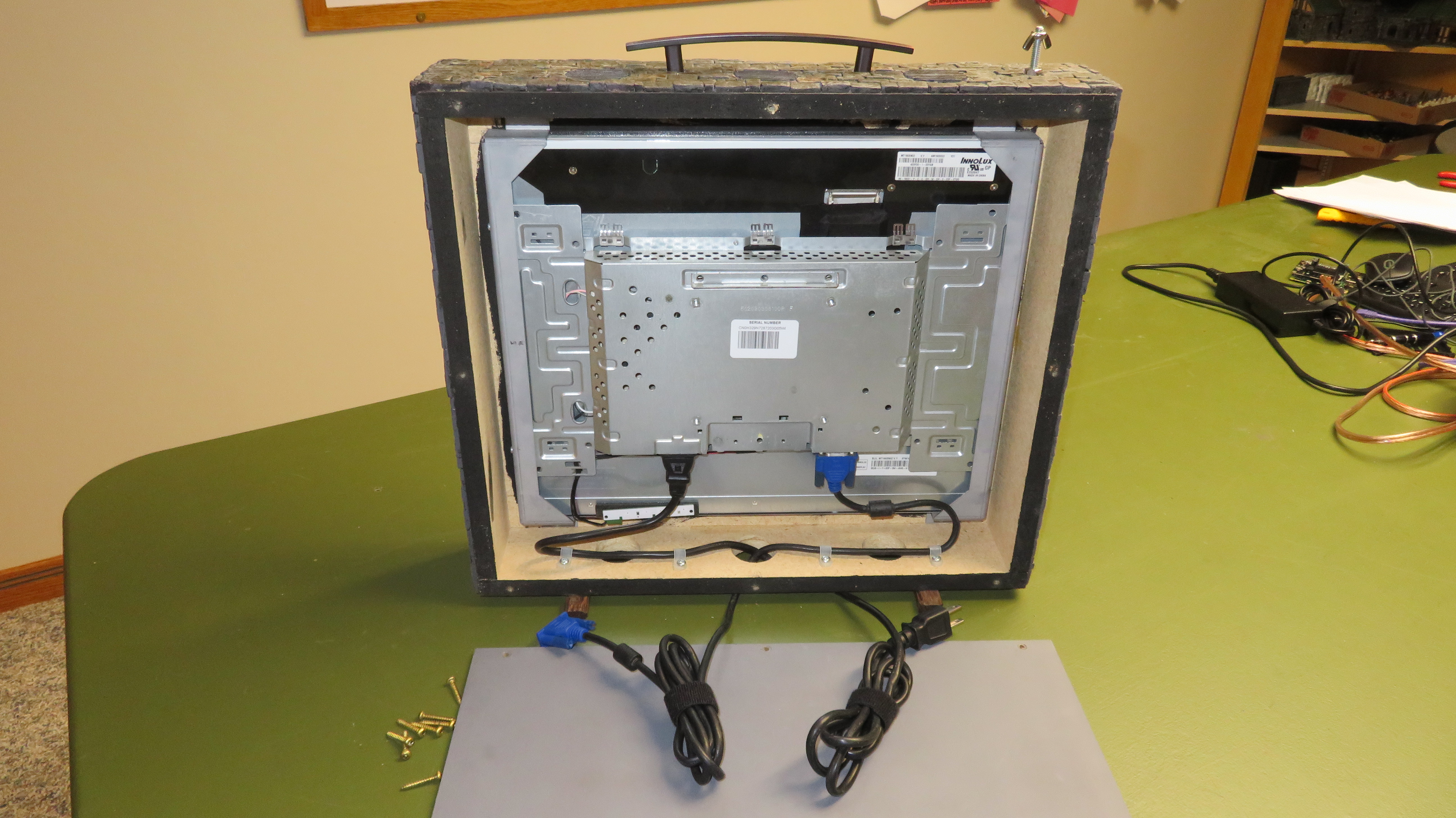 I removed the display from the monitor case and built a simple box will some particle board.