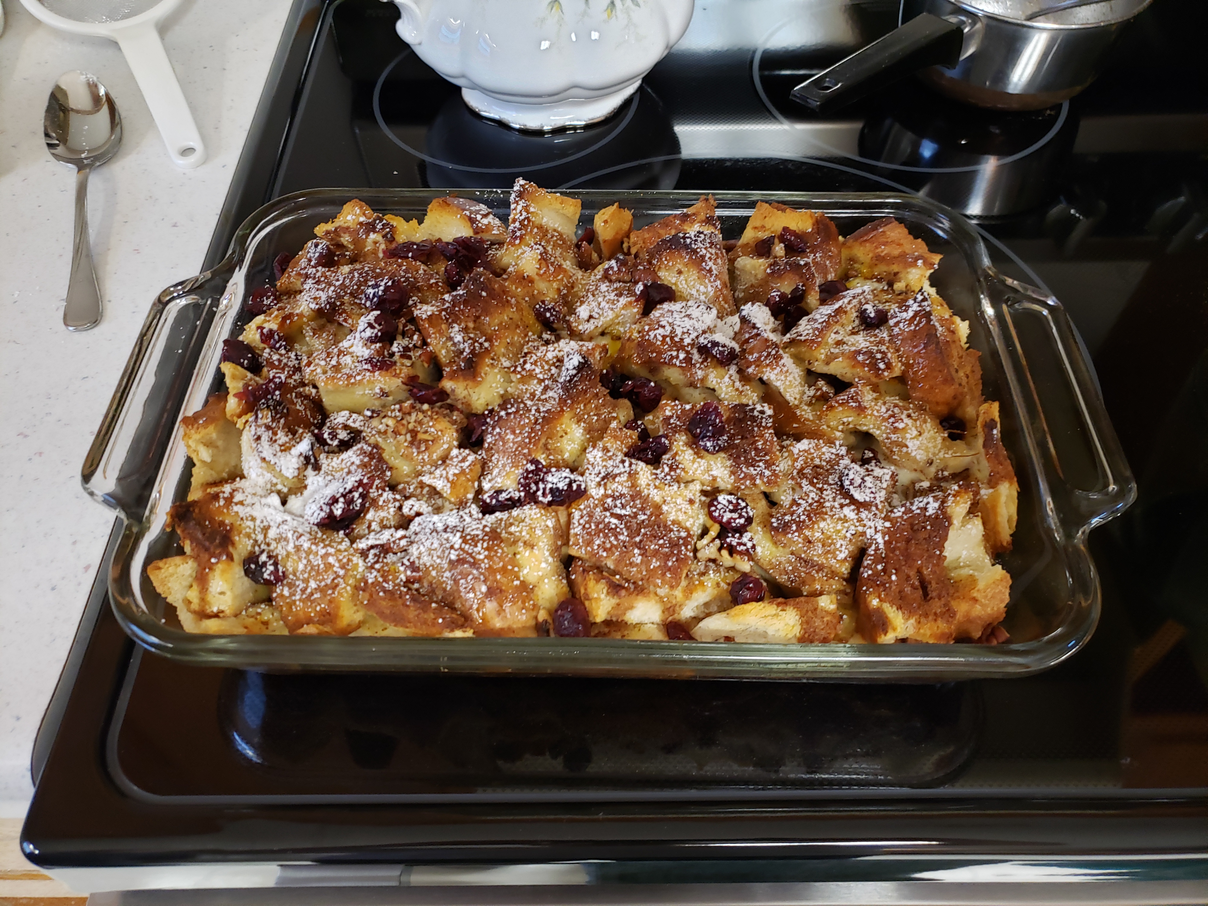 - Sprinkle dried cranberries and dust powdered sugar on top, if you like. Serve with maple syrup at the table.